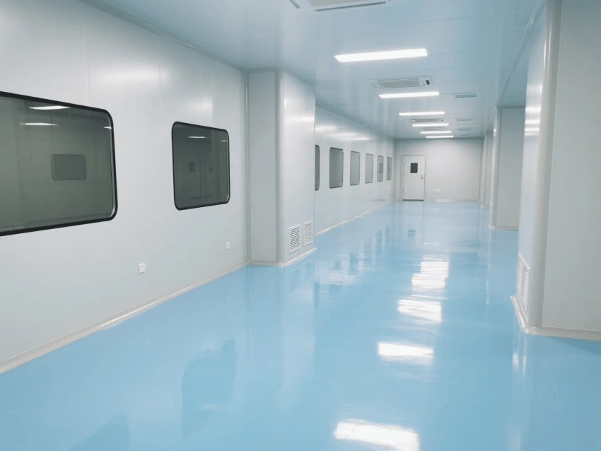 本方案依據(jù)ISO14644-1Class7(萬級)潔凈標(biāo)準(zhǔn)設(shè)計(jì),采用淺藍(lán)色彩鋼板與啞光白環(huán)氧樹脂墻面構(gòu)成主視覺系統(tǒng),營造科技感與潔凈度并重的生產(chǎn)環(huán)境。圍護(hù)結(jié)構(gòu)選用50mm厚雙面不銹鋼復(fù)合板,所有陰陽角均采用R50mm圓弧過渡處理,確保無衛(wèi)生死角。