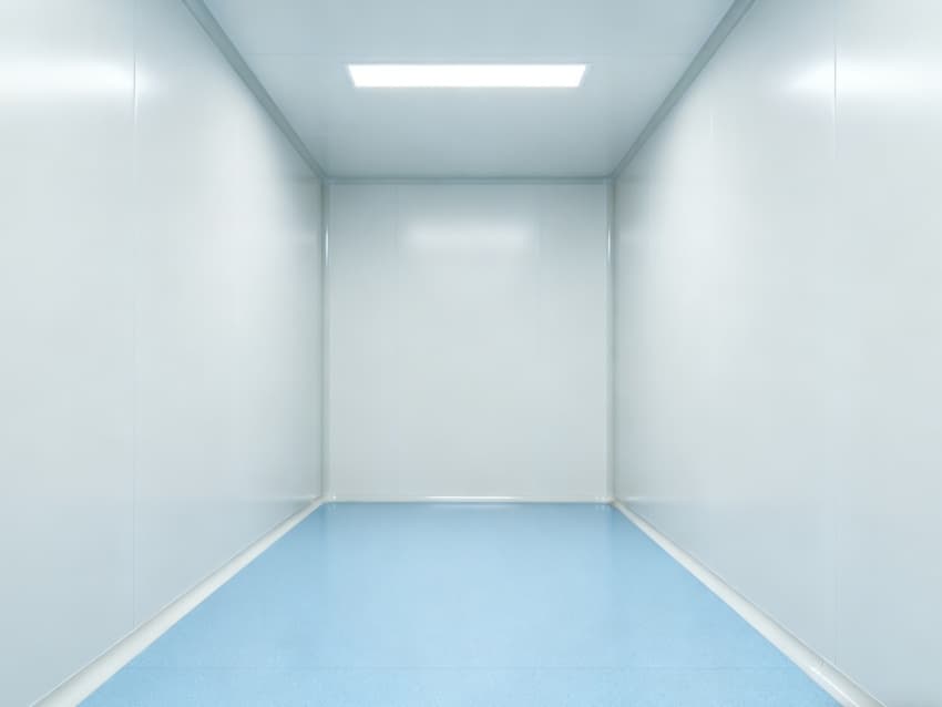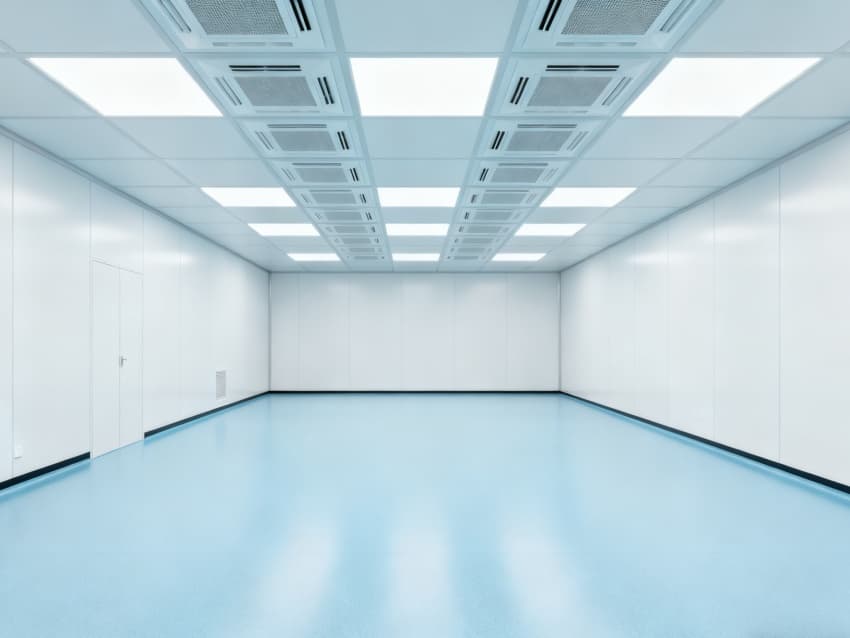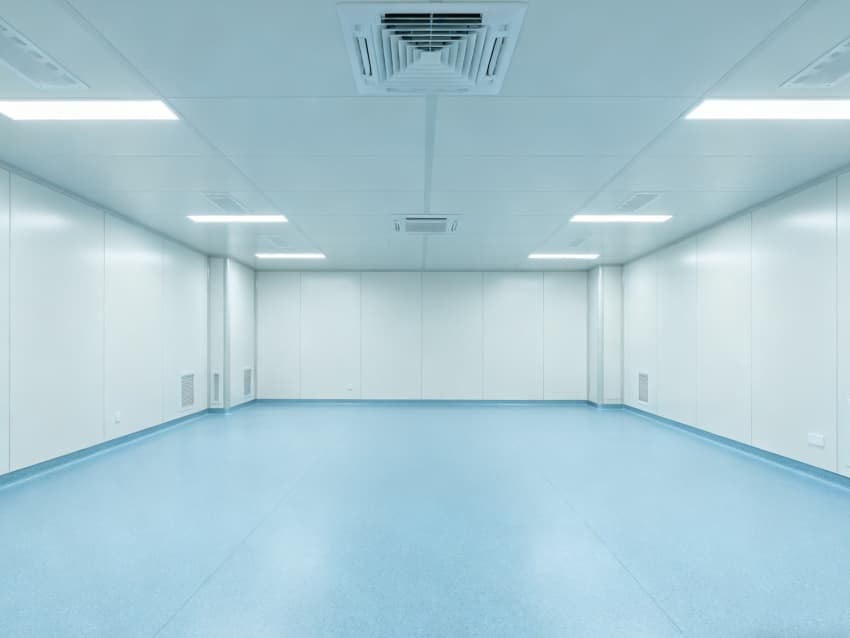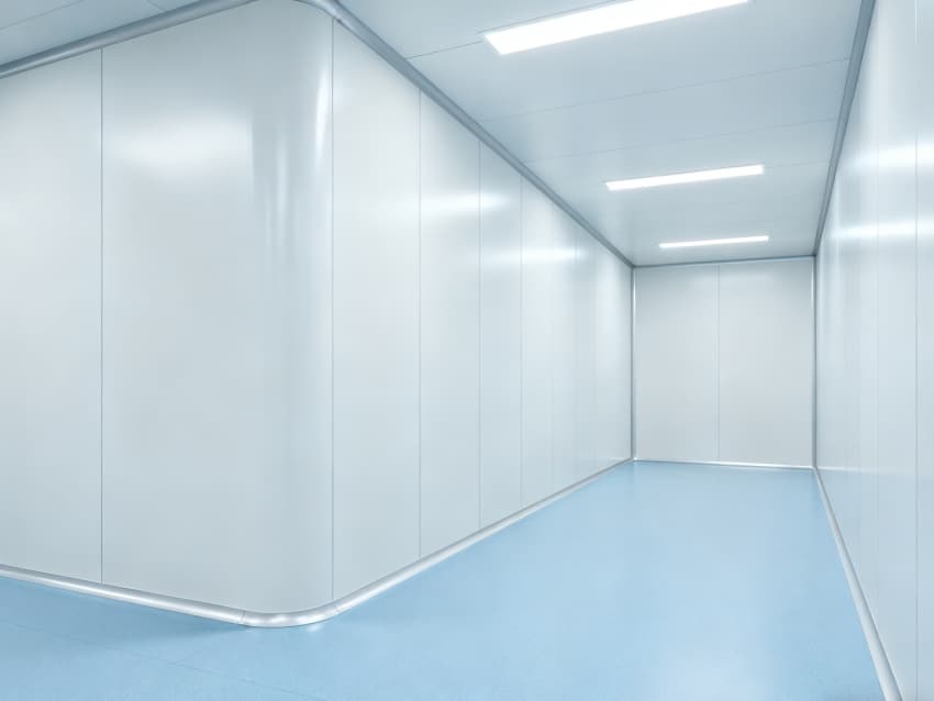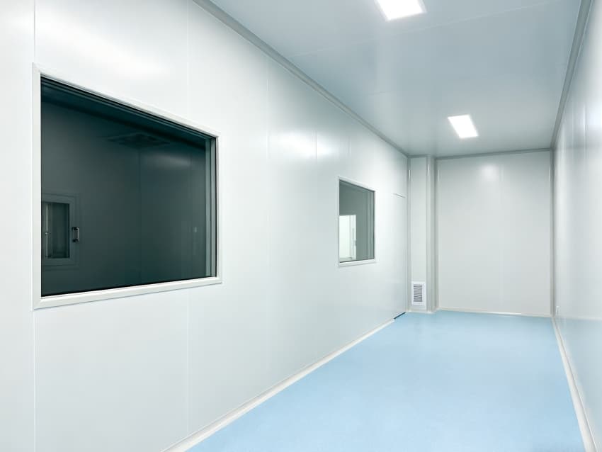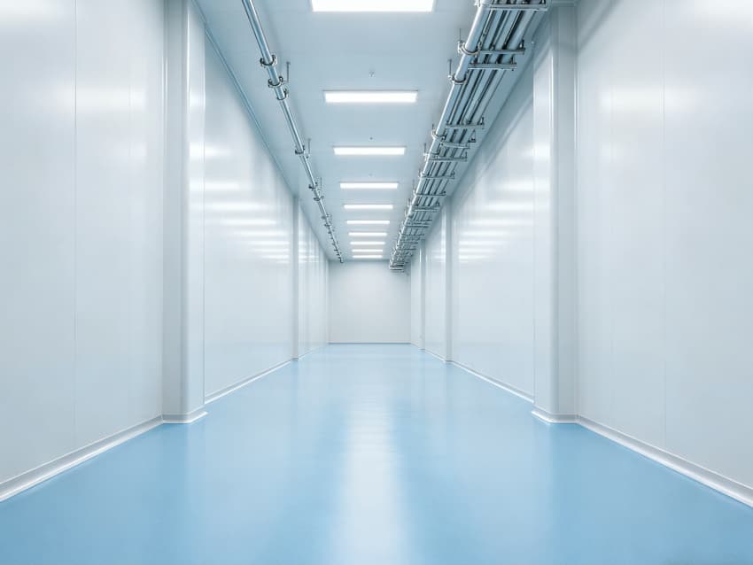 內(nèi)部按功能劃分為六大潔凈區(qū)域:核心潔凈生產(chǎn)區(qū)(淺藍(lán)色防滑防霉地面)預(yù)留開闊空間,滿足發(fā)酵罐、純化設(shè)備等后期安裝;頂部潔凈送風(fēng)區(qū)通過規(guī)整風(fēng)閥系統(tǒng),實現(xiàn)萬級潔凈度均勻送風(fēng);墻面過渡區(qū)采用圓弧轉(zhuǎn)角設(shè)計,避免粉塵堆積;密閉觀察區(qū)設(shè)雙層鋼化觀察窗,兼顧生產(chǎn)監(jiān)控與無菌隔離;縱向設(shè)備預(yù)留區(qū)保留8米凈高,適配大型凍干設(shè)備動線;輔助緩沖區(qū)銜接車間入口,搭配風(fēng)淋系統(tǒng),實現(xiàn)人員/物料潔凈過渡。整體空曠布局既保障潔凈操作空間,又滿足皖北生物制藥企業(yè)靈活擴(kuò)產(chǎn)需求,為本地藥企提供合規(guī)、高效的生產(chǎn)載體。