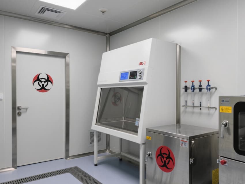 實(shí)驗(yàn)室核心區(qū)域配備負(fù)壓生物安全柜、雙扉高壓滅菌器,確保微生物操作與廢棄物處理安全;頂部高效空氣過濾器(HEPA)實(shí)現(xiàn)每小時(shí)15-20次空氣置換,尾氣經(jīng)消毒處理后排放,避免氣溶膠擴(kuò)散。互鎖式潔凈門、雙層鋼化玻璃觀察窗與應(yīng)急噴淋裝置,形成全流程安全保障。?