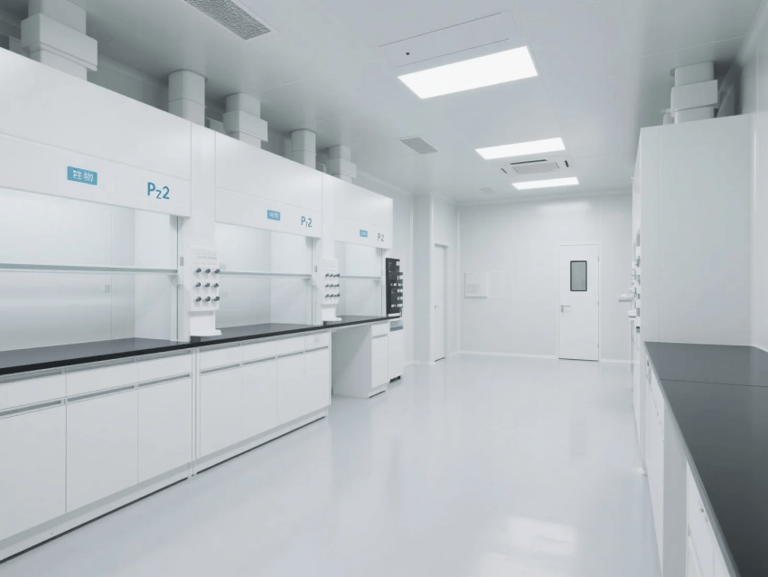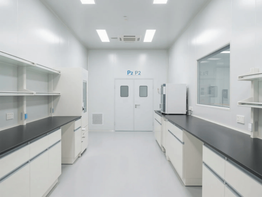 本實驗室嚴格遵循《生物安全實驗室建筑技術規范》GB50346及P2防護標準,采用"生物科技極簡風"設計語言,打造安全、高效的研發環境??臻g以象牙白彩鋼板墻體與淺灰環氧樹脂地坪構建純凈基底,營造專注、精確的實驗氛圍。