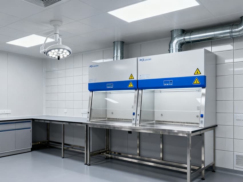 本生化研究實驗室凈化工程嚴格遵循ISO7級潔凈標準,將實驗空間科學劃分為四大核心功能區域:樣品前處理區配備通風櫥、震蕩儀等預處理設備,采用負壓設計防止交叉污染;試劑配制區設有獨立的天平室與超純水系統,通過溫濕度智能調控系統將環境參數穩定控制在±1℃與45%-60%RH;精密檢測區配置防震臺與電磁屏蔽裝置,可滿足高效液相色譜、質譜儀等精密儀器的運行需求;無菌操作區配備層流凈化工作臺與生物安全柜,配合動態浮游菌監測系統,確保實驗環境達到百級潔凈度標準。各功能區通過氣密式緩沖間與機械互鎖傳遞窗形成物理隔離,構建起三級防護屏障。在保障蛋白質分離純化、核酸提取擴增等常規實驗高效開展的同時,還專門設計了酶活性檢測專用恒溫恒濕實驗室,采用獨立的凈化空調系統與UPS不間斷電源,可支持對環境參數高度敏感的高精度研究項目。此外,工程特別設置雙通道應急處理系統,包含緊急洗眼裝置、消防噴淋系統與防化物資儲備間,配合逃生路線熒光標識與應急照明系統,全方位保障實驗人員安全與科研數據完整。?