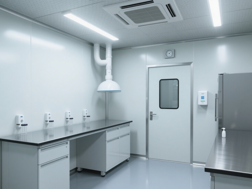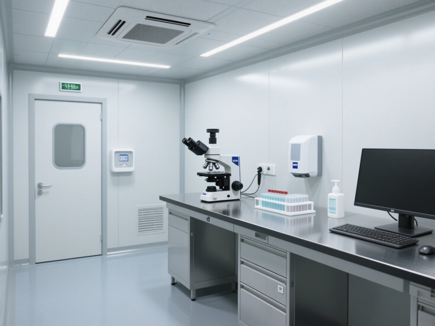 千級(jí)微生物檢測(cè)實(shí)驗(yàn)室裝修圍繞“無(wú)菌、潔凈、流程合理”核心展開(kāi)。材質(zhì)選用上,墻面、地面采用無(wú)縫、耐消毒的潔凈材料,杜絕灰塵與微生物積聚,便于清潔維護(hù);天花板搭配高效照明系統(tǒng),保障操作區(qū)域明亮均勻。