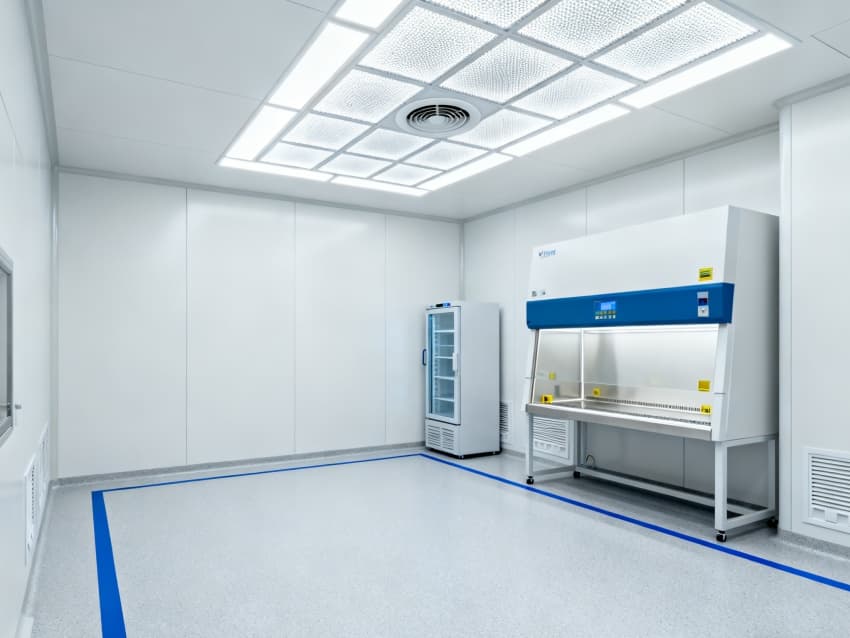 凈化工程以嚴苛標準構筑潔凈空間,核心區遵循萬級潔凈度(ISO8級),輔助區達十萬級(ISO9級),將每立方米空氣中≥0.5μm微粒精準控制在352,000個以內。三級空氣過濾系統(初效-中效-高效)與垂直層流送風設計相輔相成,如精密時鐘般驅動空氣每小時完成20-25次循環更新。室內空間采用耐腐蝕潔凈彩鋼板塑造光潔墻面,PVC無菌卷材鋪設無縫地面,每一處接縫均嚴密封合,構筑起防塵防菌的堅固屏障。恒溫系統將溫度恒定在22±2℃,濕度精準維持于50±5%RH,部分區域更以微負壓設計形成氣流護城河,有效阻斷交叉污染,全方位契合醫藥研發實驗室GMP規范的嚴苛要求。?