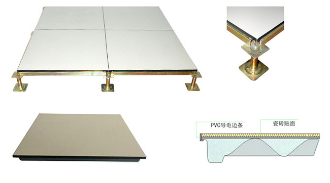 全鋼陶瓷防靜電地板系統有地板、橫梁、支座組成。橫梁和自身高度可調的支座用螺釘連結成穩固的下部支承系統,地板鑲嵌入橫梁圍成的方格內。