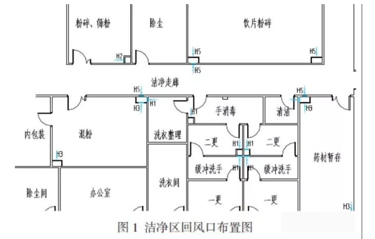 所以,在設計潔凈空調時,許多設計師也是出于這種理念,對潔凈室回風口布置的極為隨意,找空余墻角或墻邊布置上就行,完全不考慮室內氣流流向對工藝操作面的影響,使得潔凈室失去了意義。有的設計中回風口設于單向流潔凈工作臺旁,室內其它區域污染空氣流向潔凈工作臺,嚴重影響受保護區;有的設計回(排)風口又遠離產生污染的工藝設備(如粉碎機等),是的這些工藝設備產生的污染空氣流到相對潔凈區域甚至全潔凈室。