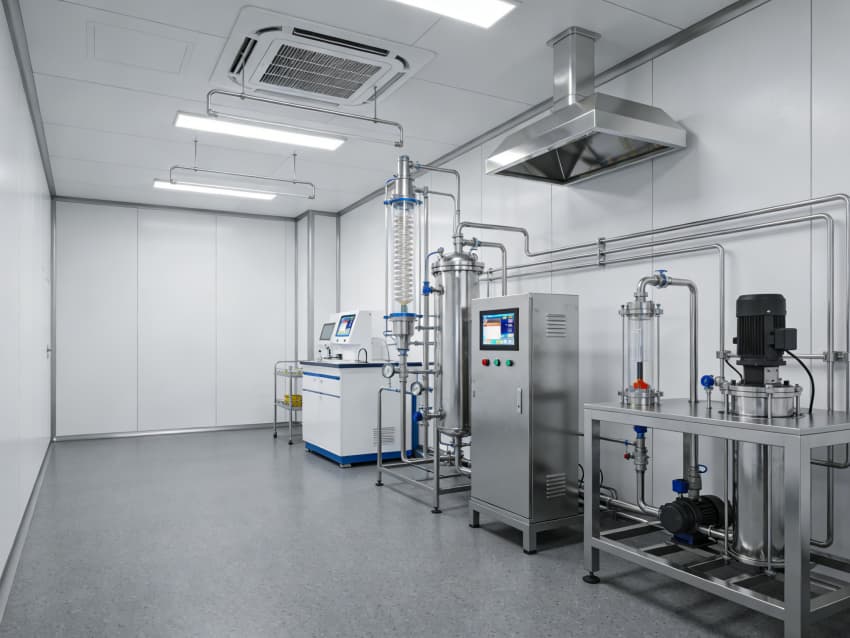 白色墻面采用食品級潔凈抗菌涂層,推行無縫拼接工藝,陰陽角圓弧倒角設(shè)計消除清潔死角,潔凈度可達Class 7級標(biāo)準(zhǔn)。車間科學(xué)劃分抗體表達區(qū)、偶聯(lián)反應(yīng)區(qū)、純化區(qū)等功能區(qū)域,各區(qū)域配備獨立層流凈化與負(fù)壓防護系統(tǒng),偶聯(lián)區(qū)預(yù)留精密溫控與惰性氣體接口,純化區(qū)設(shè)置無菌物料傳遞窗口,全方位規(guī)避交叉污染,保障研發(fā)生產(chǎn)的安全性與合規(guī)性。