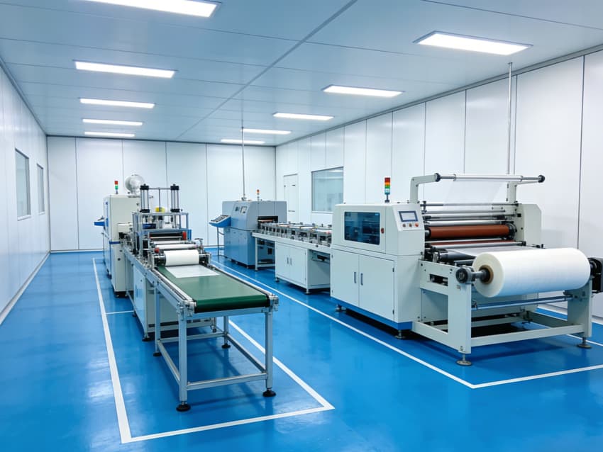 針對無紡布、紗布等原料的裁切、分切工藝,優(yōu)化設備布局與動線設計,配置除塵系統(tǒng)收集纖維粉塵;防靜電工作臺搭配LED工位燈,保障裁切精度與操作安全。